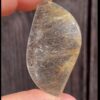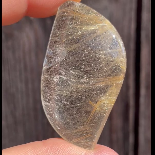 Dieser seltene Goldrutilquarz-Handschmeichler ist rund 31x58mm gross