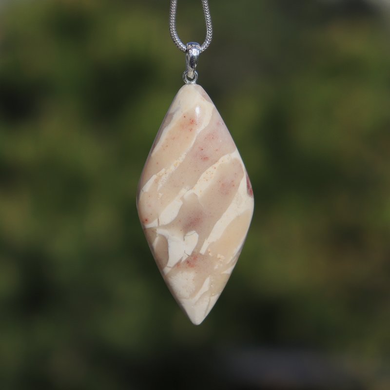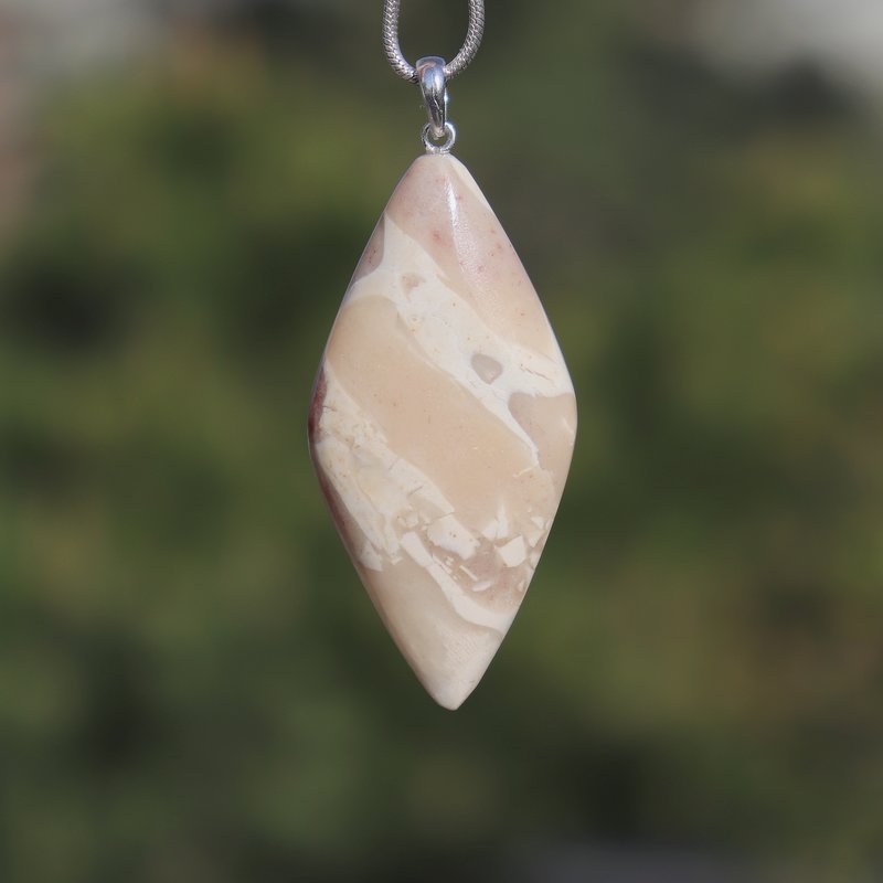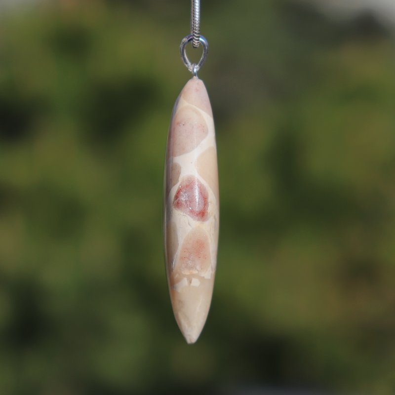 Dieser seltene, wunderschöne Anhänger aus versteinerter Koralle von Delemont (Eigenfund) ist 22x46mm gross und hat eine 925 Silberöse.