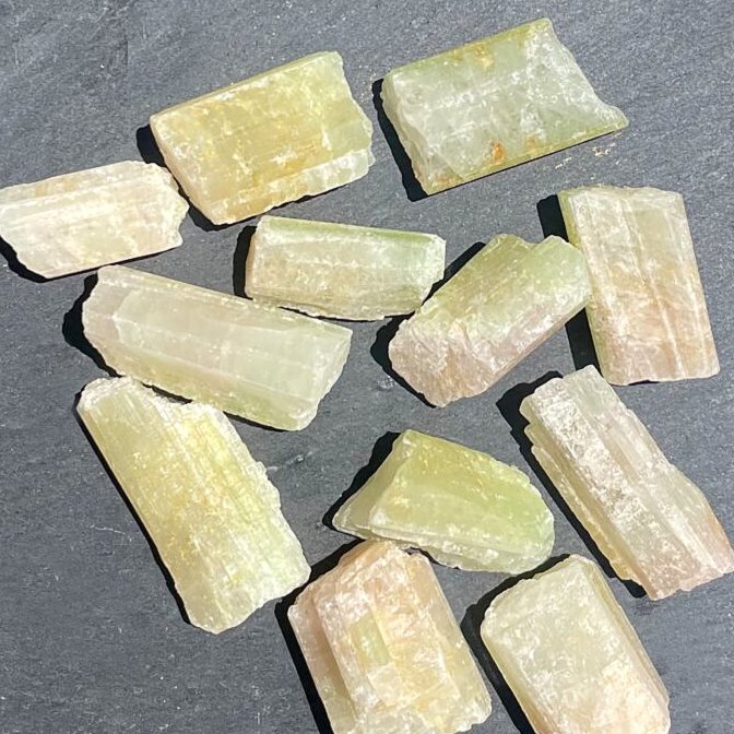 Rohstein Kristalle in sanfter Farbe, aber schöner Energie. Ideal zur Schmuckherstellung, als Wassersteine, um sie aufzulegen oder als Taschenstein. Lot aus 100g und die Turmaline haben eine Grösse von 2-4cm.